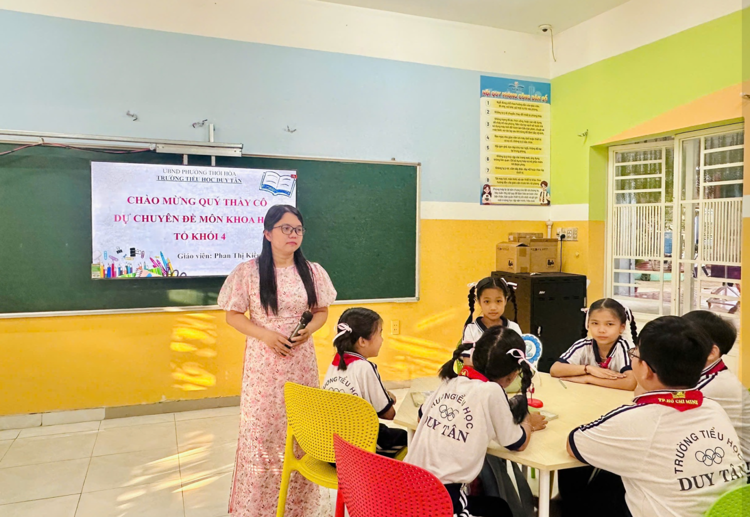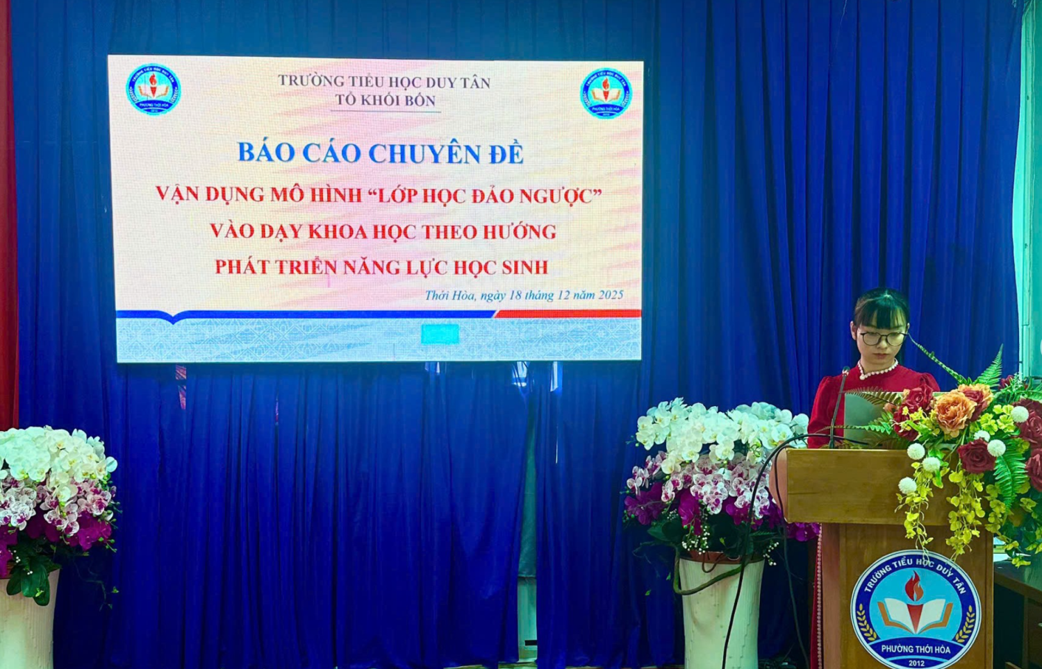 Thực hiện kế hoạch chuyên môn năm học 2025 – 2026 và nhằm đẩy mạnh đổi mới phương pháp dạy học theo định hướng phát triển năng lực học sinh, ngày 19 tháng 12 năm 2025, Trường Tiểu học Duy Tân đã tổ chức buổi báo cáo chuyên đề “Vận dụng mô hình Lớp học đảo ngược vào dạy học Khoa học lớp 4” do Tổ lớp Bốn thực hiện.