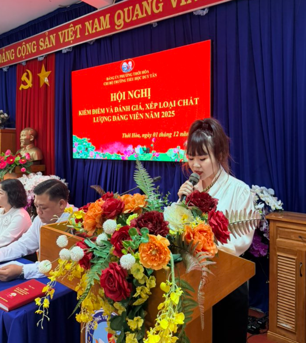 Đ/c Nguyễn Thanh Thảo đến dự và phát biểu chỉ đạo, góp phần định hướng những nhiệm vụ trọng tâm trong công tác xây dựng Đảng tại đơn vị trong thời gian tới. Với niềm tin và quyết tâm mới, Chi bộ Trường Tiểu học Duy Tân sẽ tiếp tục phát huy truyền thống đoàn kết, đổi mới, hoàn thành xuất sắc nhiệm vụ trong năm 2026.