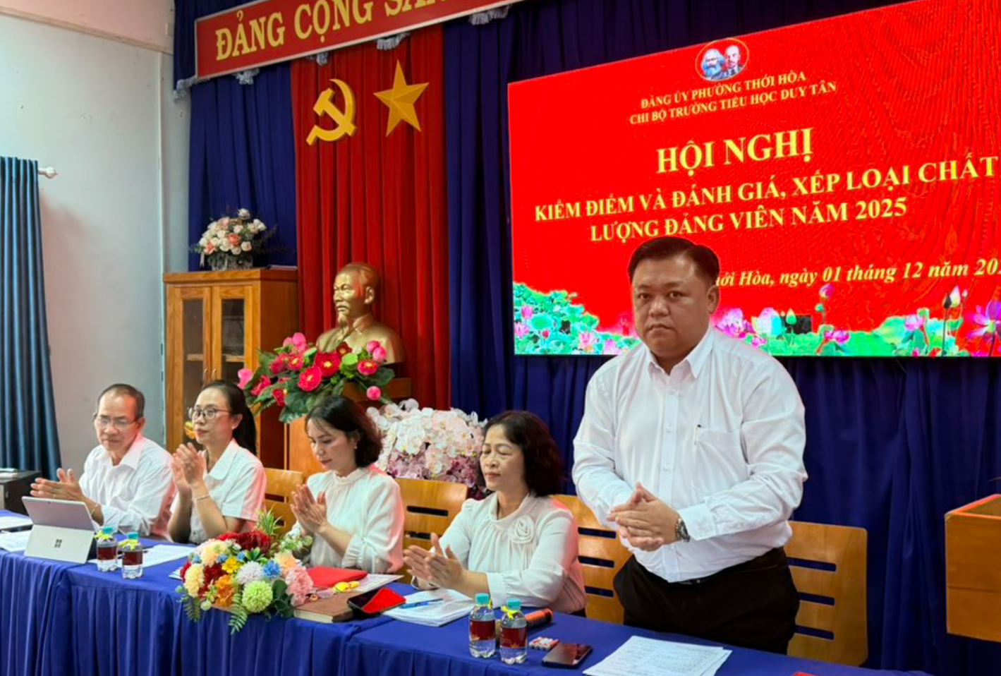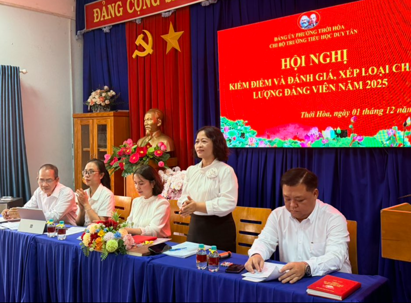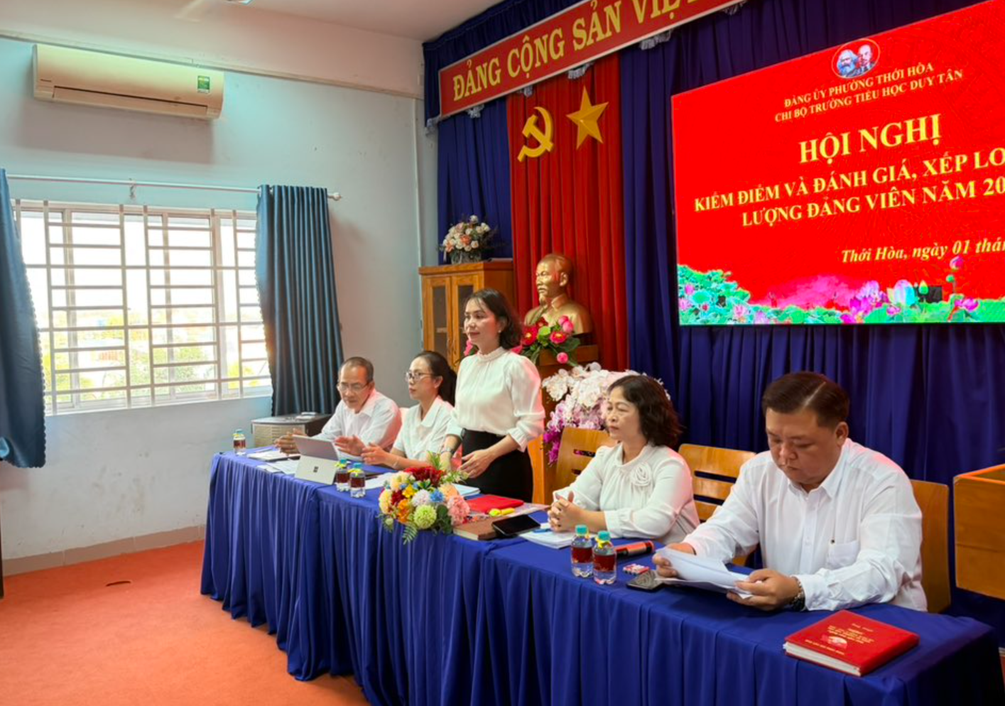 Chiều ngày 02/12 và 03/12/2025, Chi bộ Trường Tiểu học Duy Tân đã tổ chức Hội nghị kiểm điểm, đánh giá và xếp loại chất lượng đối với tập thể Chi bộ, tập thể Cấp uỷ chi bộ và đảng viên năm 2025.