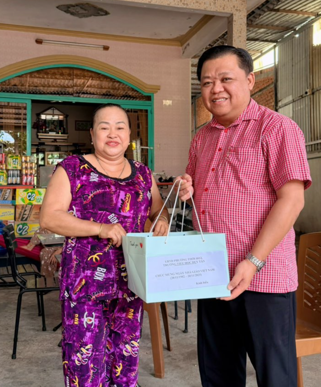 Hôm nay, trong không khí hân hoan của Ngày Nhà giáo Việt Nam 20/11, thay mặt BGH và tập thể CBGVNV Trường TH Duy Tân, Thầy Nguyễn Dak Anh Tuấn- Phó hiệu trưởng nhà trường đã ghé thăm và gửi lời chúc tốt đẹp nhất đến 3 giáo viên nghỉ hưu.